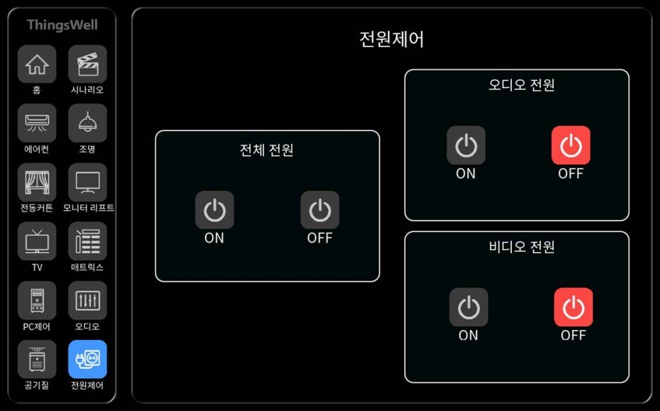 (1) 영상, 음향, 컴퓨터 시스템 전체 원터치 ON, OFF 제어