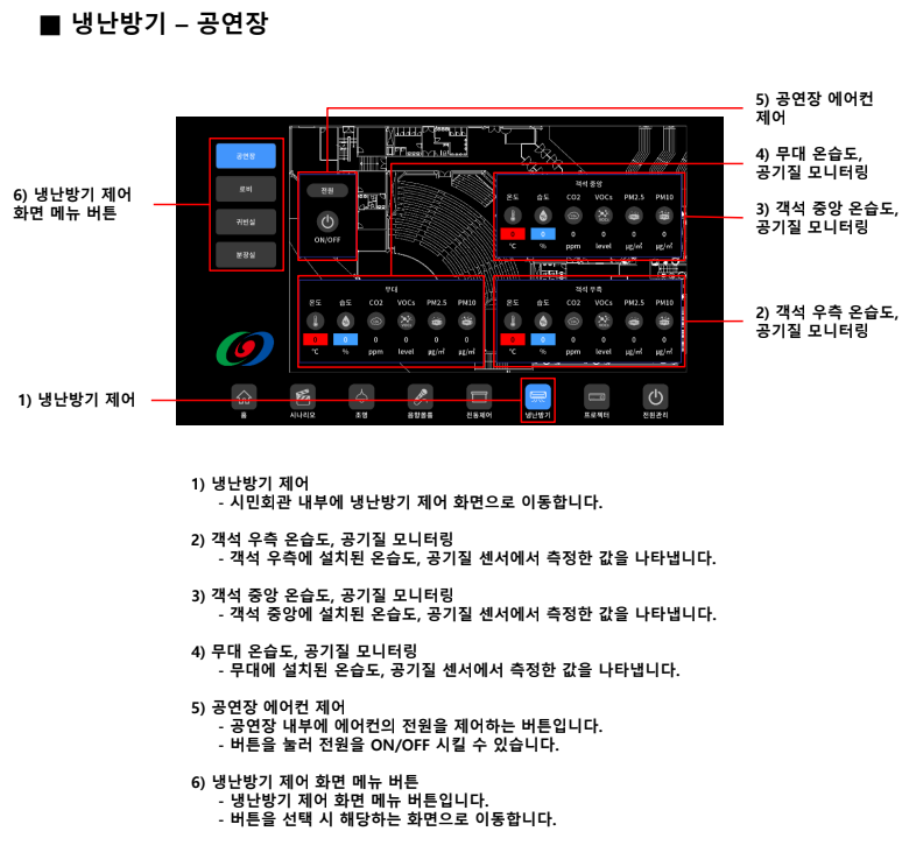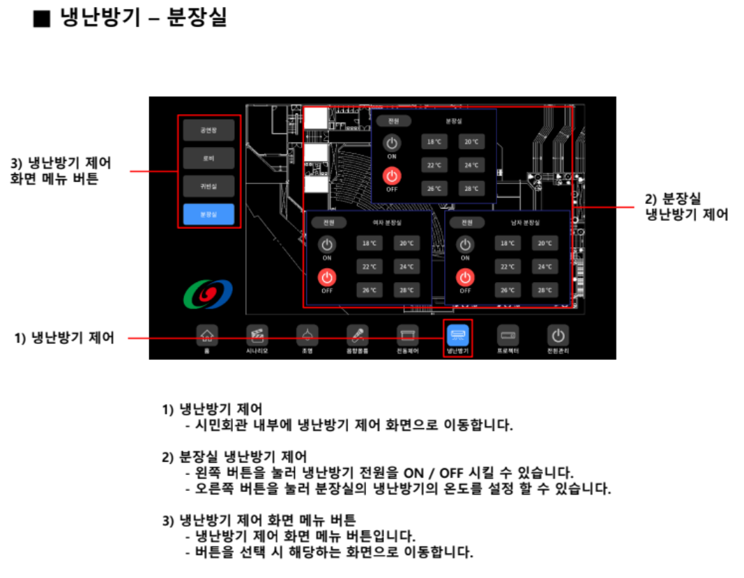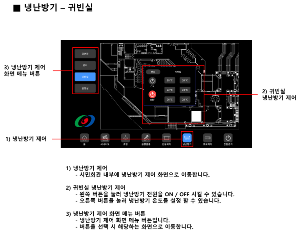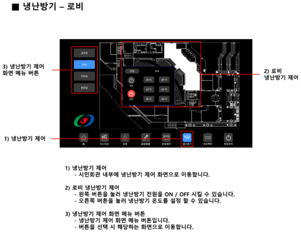 - 로비, 귀빈실, 분장실 에어컨 제어