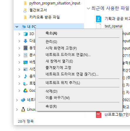 - 바탕화면에서 'This PC' 또는 'My Computer' 아이콘을 우클릭합니다.