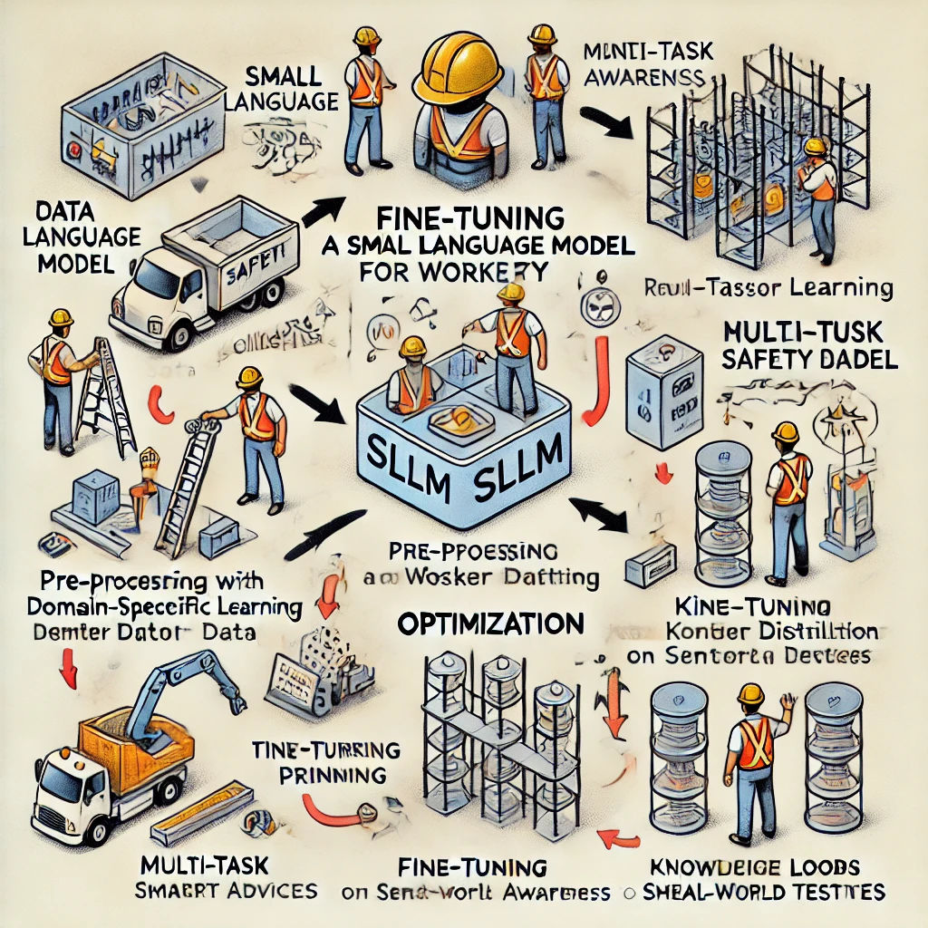 스마트 디바이스에 탑재 가능한 소형 sLLM 모델을 작업자 안전을 위한 향상된 모델로 파인 튜닝하는 과정은, 경량화된 모델을 통해 실시간으로 작업자의 질문에 대응하고, 위험 상황에 맞춘 맞춤형 지침을 제공하는 데 중점을 둡니다. 이를 위해 데이터 수집, 멀티태스크 학습, 경량화 기법, 실시간 테스트 등 다양한 단계를 통해 모델을 최적화하며, 현장 피드백을 반영하여 지속적으로 성능을 개선하는 접근이 필요합니다.