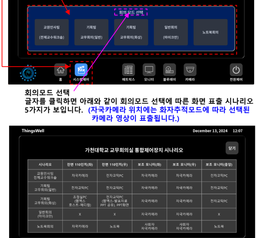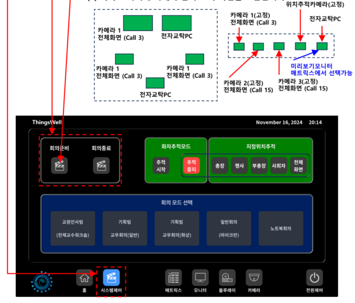반복 작업 자동화: 회의 모드 전환, 디스플레이 관리, 음향 및 전원 제어 등 수작업으로 처리하던 반복 작업을 시스템이 자동으로 수행합니다.